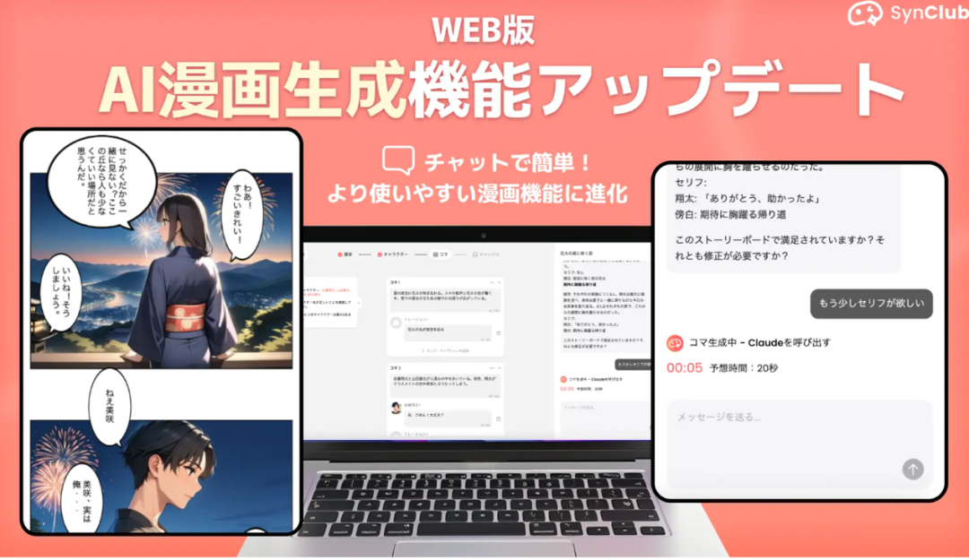 . 围绕日本用户偏爱的“二创文化”进行功能布局。「SynClub」不仅支持图片生成,还可一键将用户的聊天内容转化为简单动画或漫画,结合平台内的社区功能,鼓励用户进行分享与交流,进一步激发内容共创。