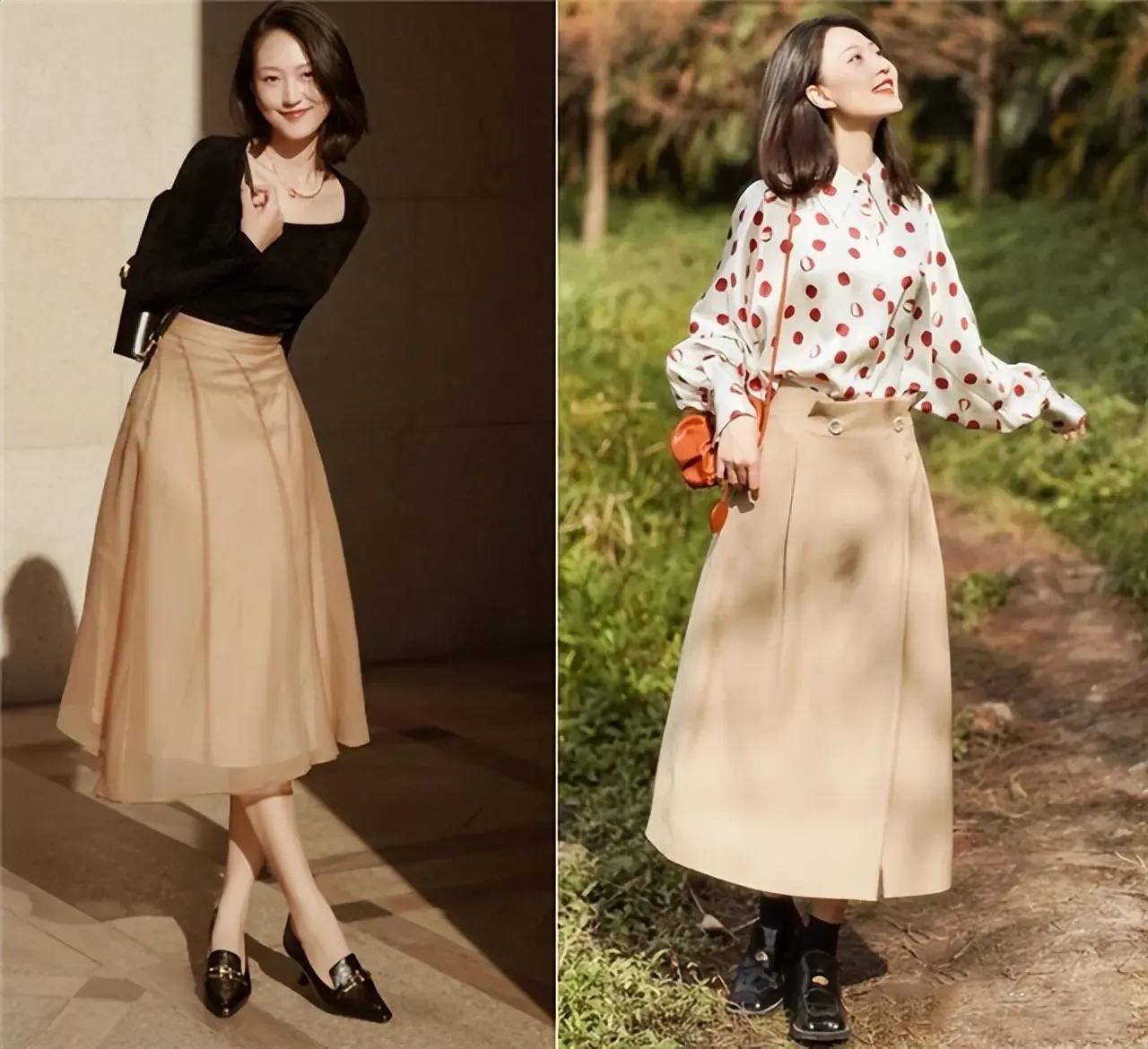 不过在选择裙子的时候也有一定的讲究,比如说裙子长度一定要盖过膝盖到小腿肚的位置,裙摆尽量选择外扩的款式,比如说像a字半身裙,直筒半身裙,还有伞状半身裙,这三种裙子最为遮肉。