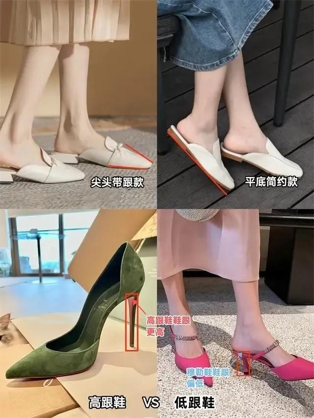 我们有的时候就算是选择平底单鞋,也要带点跟最为合适,例如下面右边的这双浅口的低跟单鞋,穿在脚上之后就能更好的延伸你的腿部线条。